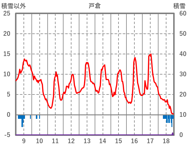 | 日 | 時 | 気温 | 降水 | 風向/風速 | 日照 | 積雪 | 降雪 |