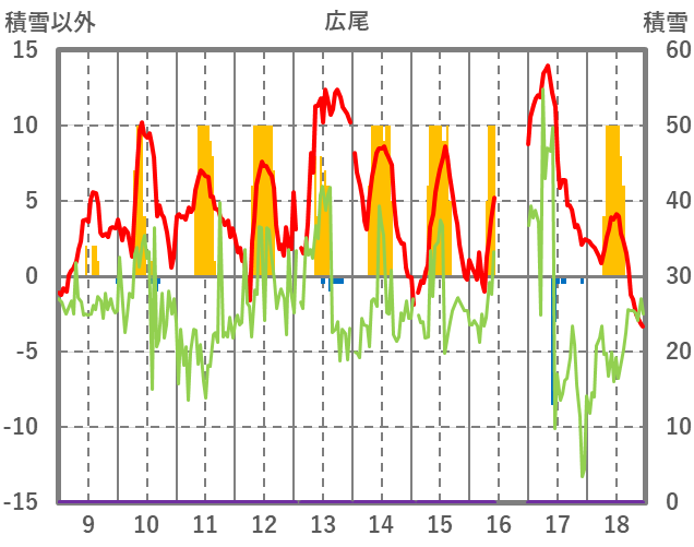 | 日 | 時 | 気温 | 降水 | 風向/風速 | 日照 | 積雪 | 降雪 |