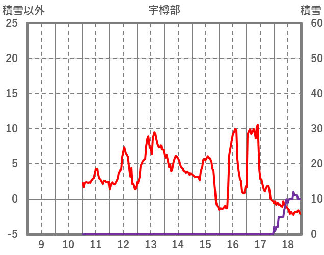 | 日 | 時 | 気温 | 降水 | 風向/風速 | 日照 | 積雪 | 降雪 |