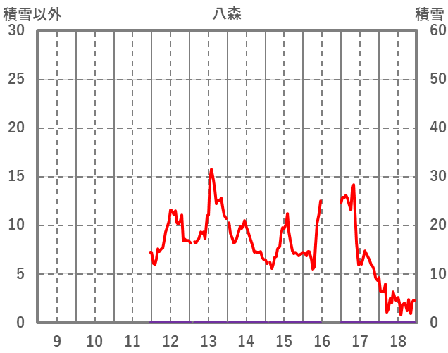 | 日 | 時 | 気温 | 降水 | 風向/風速 | 日照 | 積雪 | 降雪 |