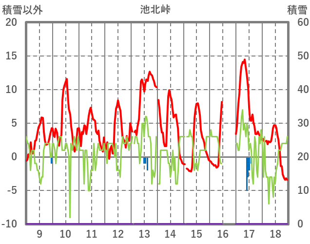| 日 | 時 | 気温 | 降水 | 風向/風速 | 日照 | 積雪 | 降雪 |