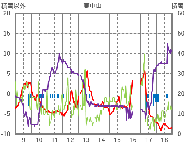 | 日 | 時 | 気温 | 降水 | 風向/風速 | 日照 | 積雪 | 降雪 |
