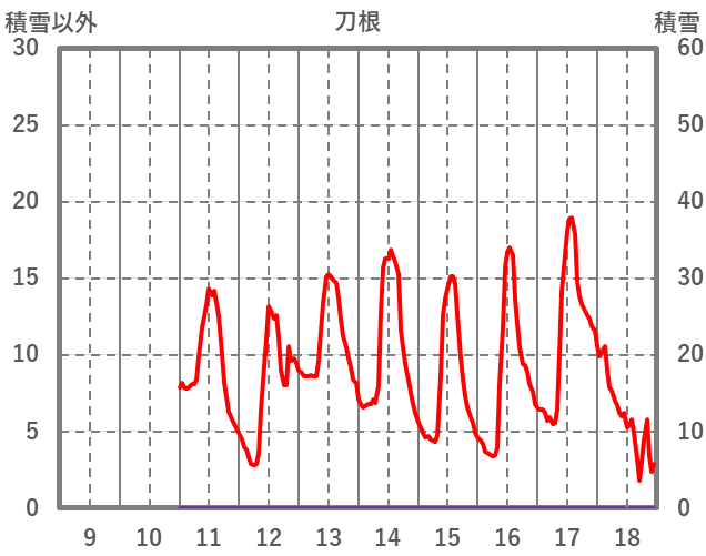 | 日 | 時 | 気温 | 降水 | 風向/風速 | 日照 | 積雪 | 降雪 |