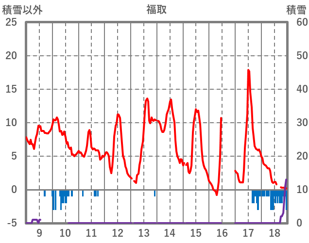 | 日 | 時 | 気温 | 降水 | 風向/風速 | 日照 | 積雪 | 降雪 |