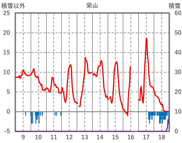 | 日 | 時 | 気温 | 降水 | 風向/風速 | 日照 | 積雪 | 降雪 |