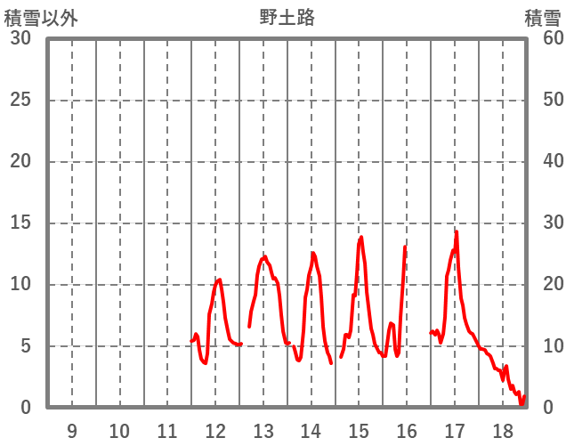 | 日 | 時 | 気温 | 降水 | 風向/風速 | 日照 | 積雪 | 降雪 |