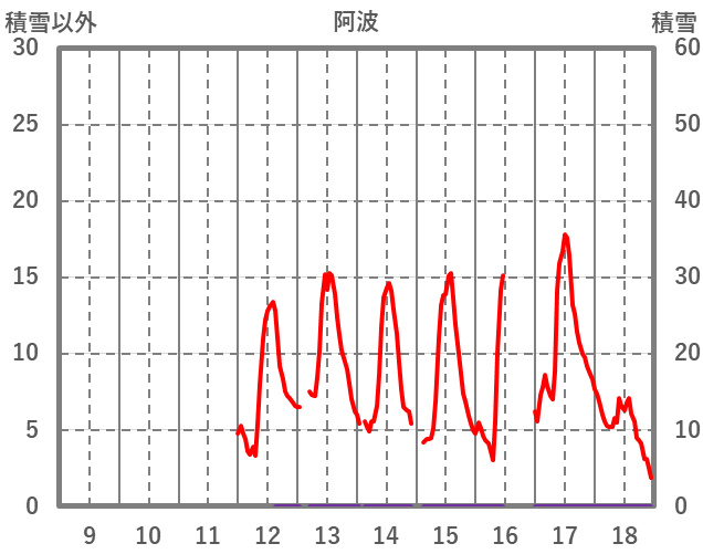 | 日 | 時 | 気温 | 降水 | 風向/風速 | 日照 | 積雪 | 降雪 |