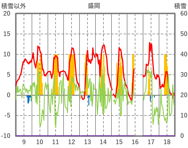 | 日 | 時 | 気温 | 降水 | 風向/風速 | 日照 | 積雪 | 降雪 |