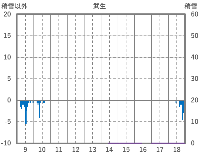 | 日 | 時 | 気温 | 降水 | 風向/風速 | 日照 | 積雪 | 降雪 |