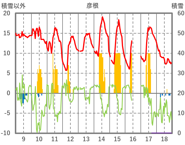 | 日 | 時 | 気温 | 降水 | 風向/風速 | 日照 | 積雪 | 降雪 |
