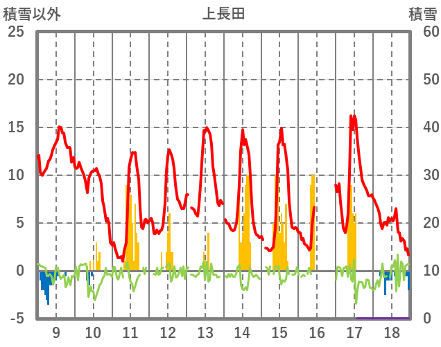 | 日 | 時 | 気温 | 降水 | 風向/風速 | 日照 | 積雪 | 降雪 |