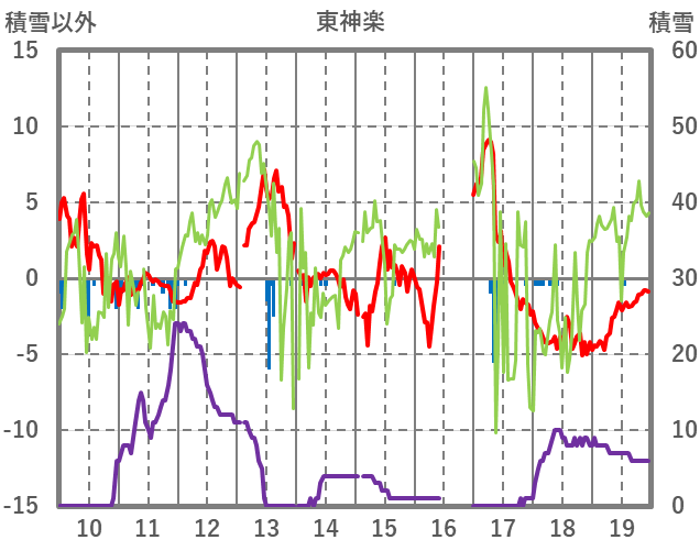 | 日 | 時 | 気温 | 降水 | 風向/風速 | 日照 | 積雪 | 降雪 |