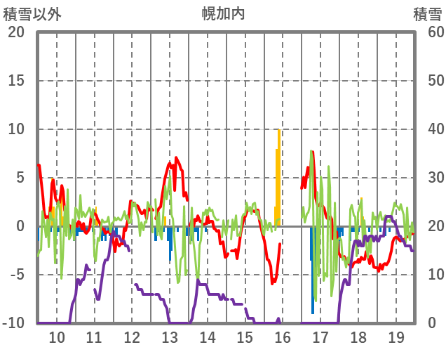 | 日 | 時 | 気温 | 降水 | 風向/風速 | 日照 | 積雪 | 降雪 |