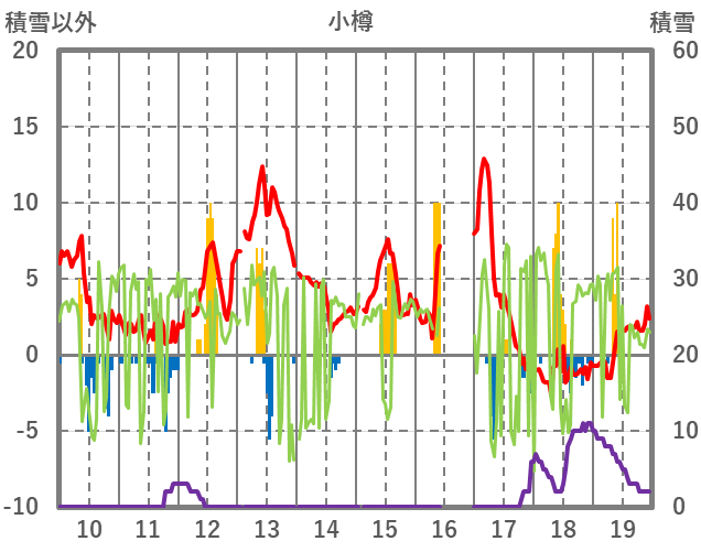 | 日 | 時 | 気温 | 降水 | 風向/風速 | 日照 | 積雪 | 降雪 |