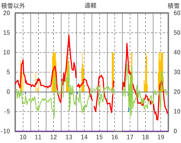 | 日 | 時 | 気温 | 降水 | 風向/風速 | 日照 | 積雪 | 降雪 |