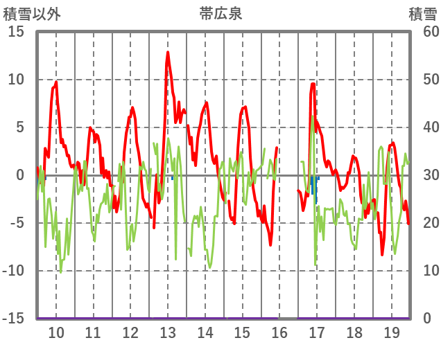 | 日 | 時 | 気温 | 降水 | 風向/風速 | 日照 | 積雪 | 降雪 |