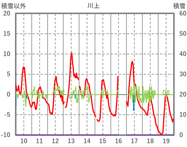 | 日 | 時 | 気温 | 降水 | 風向/風速 | 日照 | 積雪 | 降雪 |