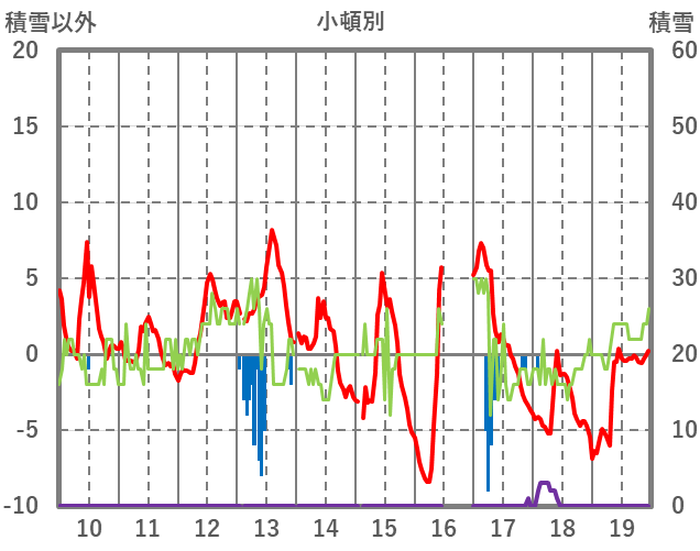 | 日 | 時 | 気温 | 降水 | 風向/風速 | 日照 | 積雪 | 降雪 |