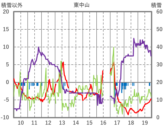| 日 | 時 | 気温 | 降水 | 風向/風速 | 日照 | 積雪 | 降雪 |