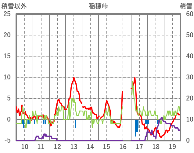 | 日 | 時 | 気温 | 降水 | 風向/風速 | 日照 | 積雪 | 降雪 |