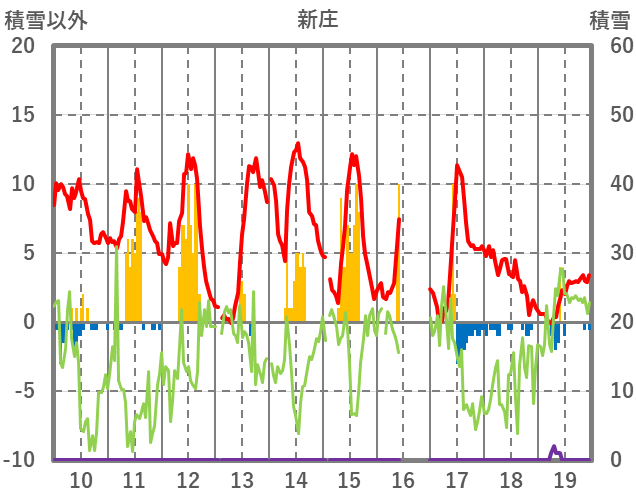 | 日 | 時 | 気温 | 降水 | 風向/風速 | 日照 | 積雪 | 降雪 |