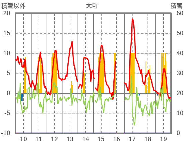 | 日 | 時 | 気温 | 降水 | 風向/風速 | 日照 | 積雪 | 降雪 |