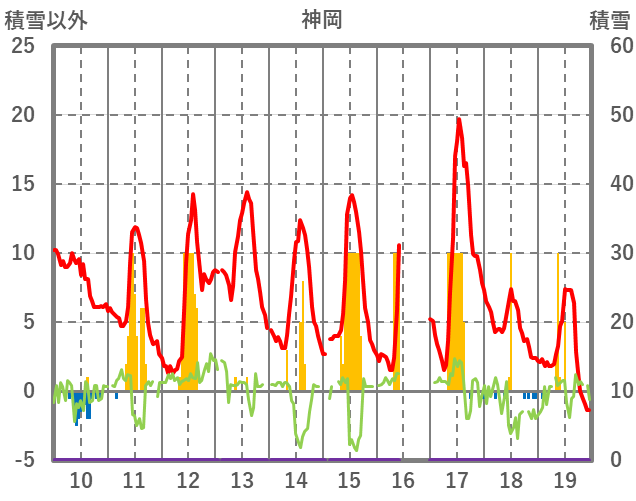 | 日 | 時 | 気温 | 降水 | 風向/風速 | 日照 | 積雪 | 降雪 |