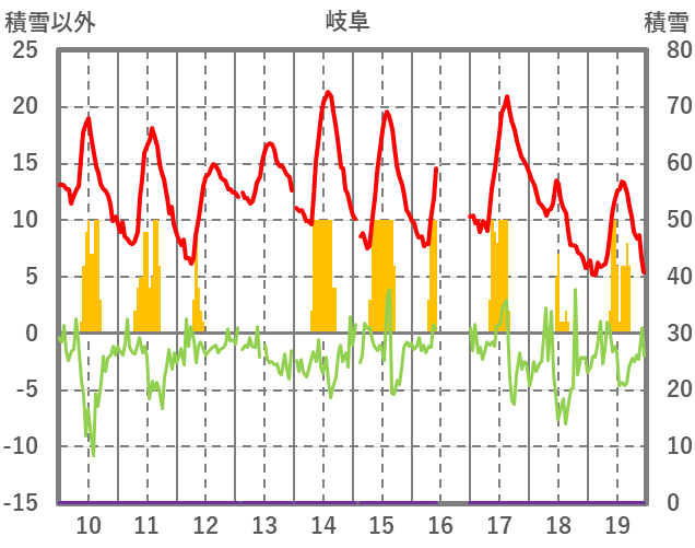 | 日 | 時 | 気温 | 降水 | 風向/風速 | 日照 | 積雪 | 降雪 |