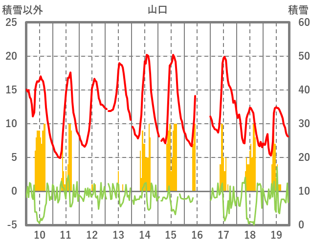 | 日 | 時 | 気温 | 降水 | 風向/風速 | 日照 | 積雪 | 降雪 |