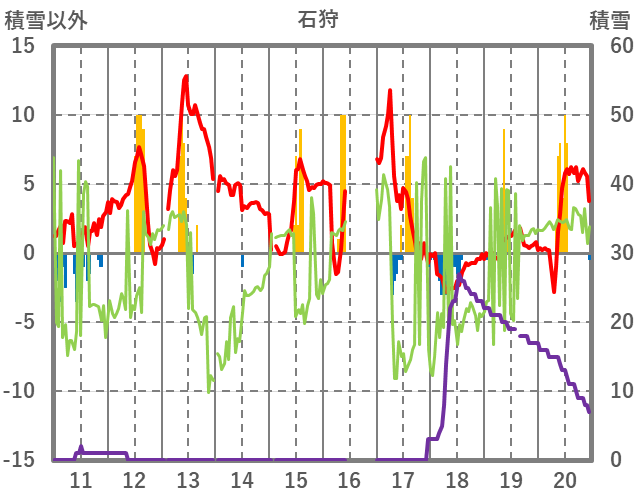 | 日 | 時 | 気温 | 降水 | 風向/風速 | 日照 | 積雪 | 降雪 |