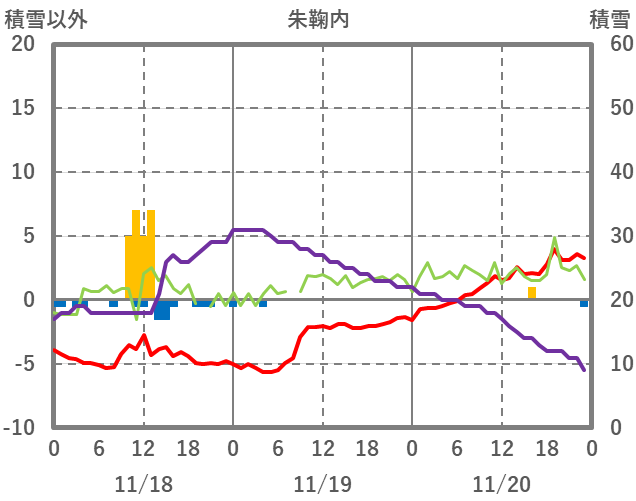 | 日 | 時 | 気温 | 降水 | 風向/風速 | 日照 | 積雪 | 降雪 |