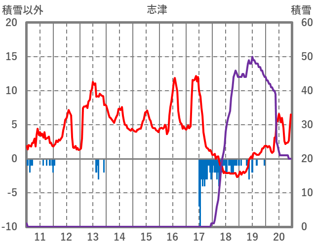 | 日 | 時 | 気温 | 降水 | 風向/風速 | 日照 | 積雪 | 降雪 |