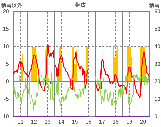 | 日 | 時 | 気温 | 降水 | 風向/風速 | 日照 | 積雪 | 降雪 |