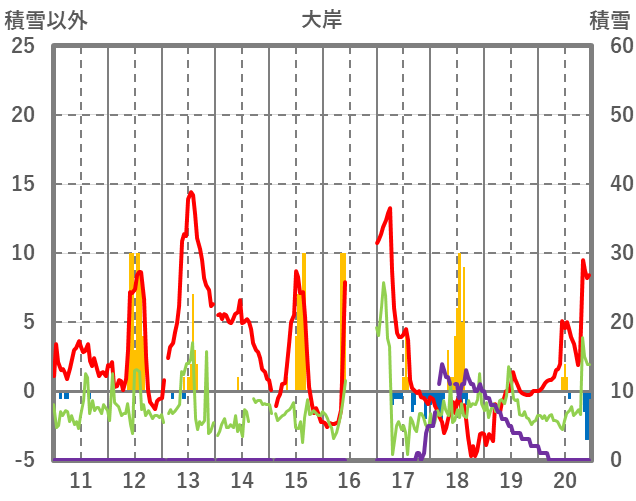 | 日 | 時 | 気温 | 降水 | 風向/風速 | 日照 | 積雪 | 降雪 |