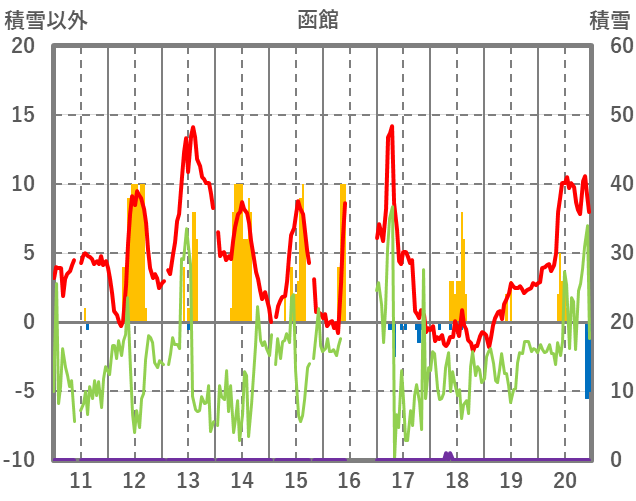 | 日 | 時 | 気温 | 降水 | 風向/風速 | 日照 | 積雪 | 降雪 |
