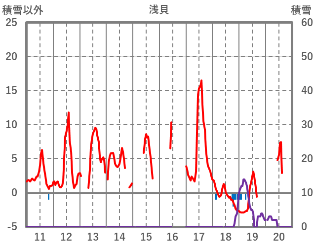 | 日 | 時 | 気温 | 降水 | 風向/風速 | 日照 | 積雪 | 降雪 |