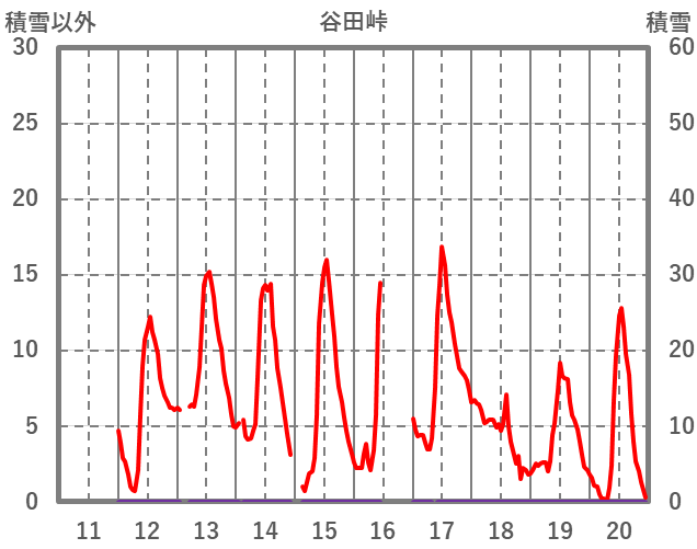 | 日 | 時 | 気温 | 降水 | 風向/風速 | 日照 | 積雪 | 降雪 |