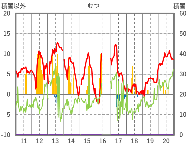 | 日 | 時 | 気温 | 降水 | 風向/風速 | 日照 | 積雪 | 降雪 |