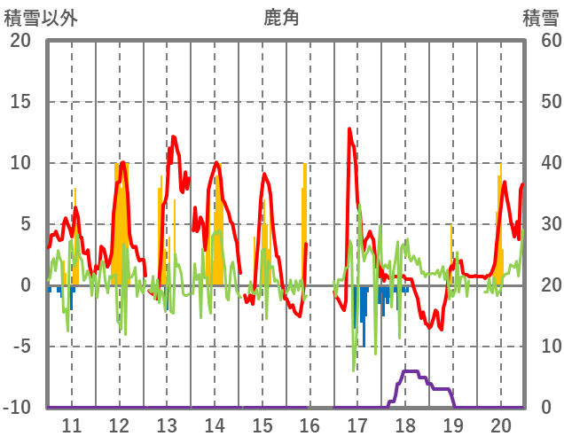| 日 | 時 | 気温 | 降水 | 風向/風速 | 日照 | 積雪 | 降雪 |