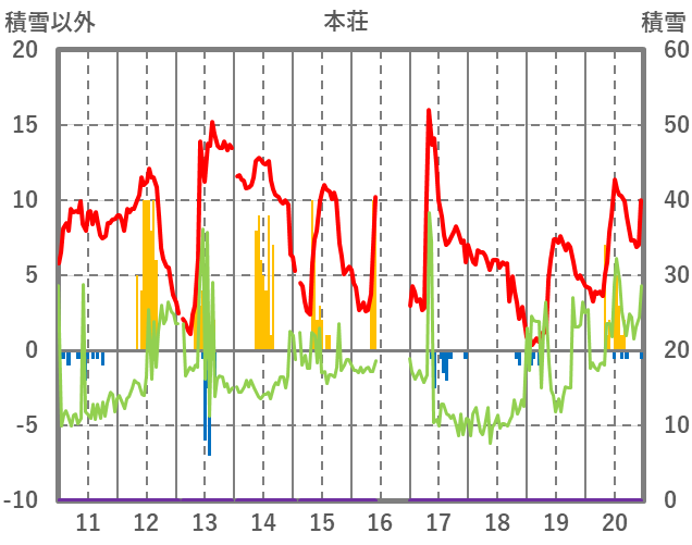 | 日 | 時 | 気温 | 降水 | 風向/風速 | 日照 | 積雪 | 降雪 |