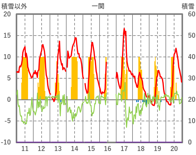 | 日 | 時 | 気温 | 降水 | 風向/風速 | 日照 | 積雪 | 降雪 |