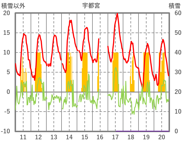 | 日 | 時 | 気温 | 降水 | 風向/風速 | 日照 | 積雪 | 降雪 |