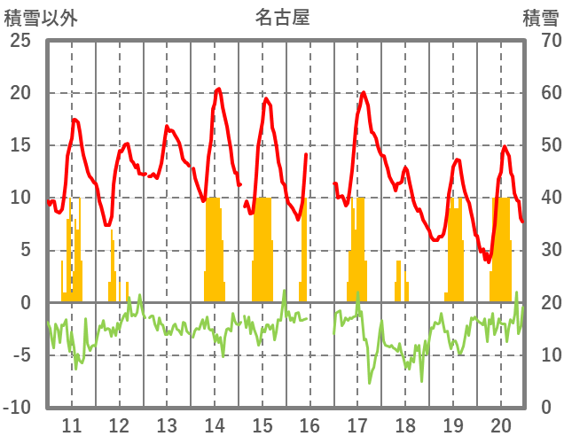 | 日 | 時 | 気温 | 降水 | 風向/風速 | 日照 | 積雪 | 降雪 |
