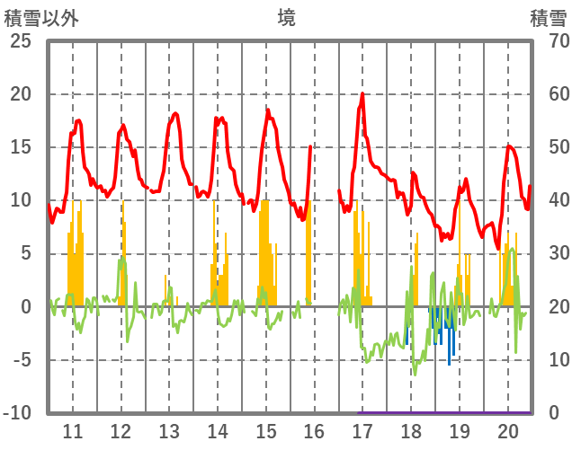 | 日 | 時 | 気温 | 降水 | 風向/風速 | 日照 | 積雪 | 降雪 |