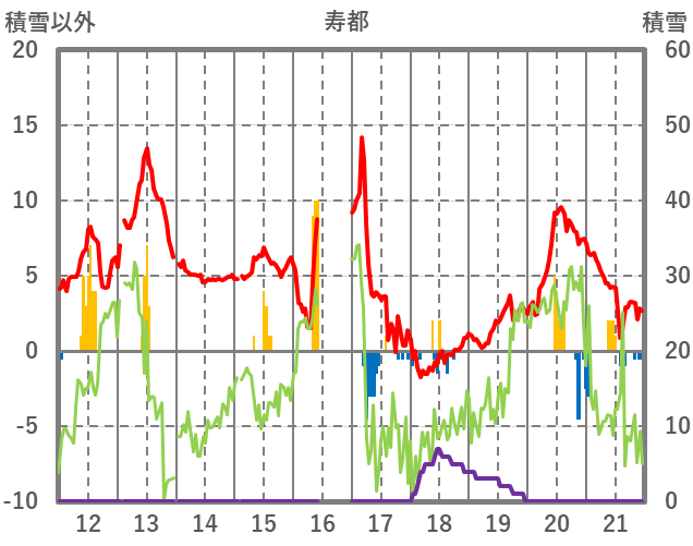 | 日 | 時 | 気温 | 降水 | 風向/風速 | 日照 | 積雪 | 降雪 |