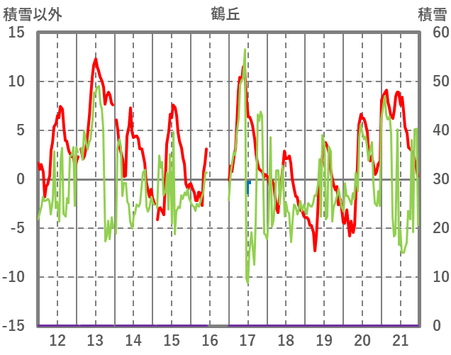 | 日 | 時 | 気温 | 降水 | 風向/風速 | 日照 | 積雪 | 降雪 |