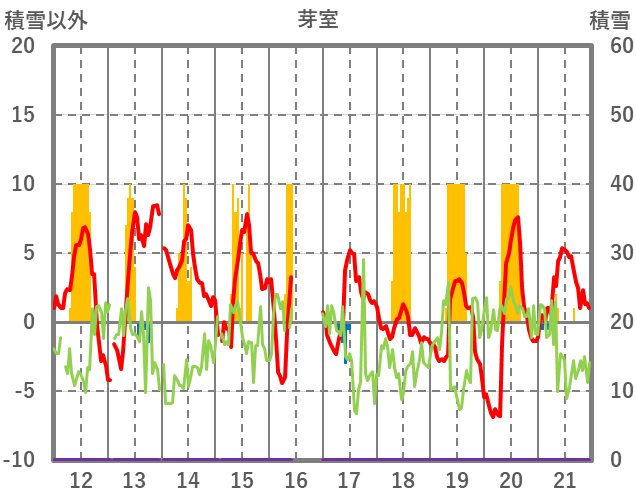 | 日 | 時 | 気温 | 降水 | 風向/風速 | 日照 | 積雪 | 降雪 |