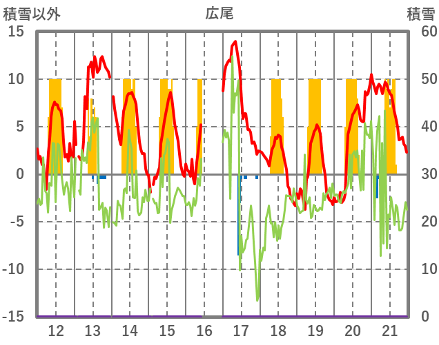 | 日 | 時 | 気温 | 降水 | 風向/風速 | 日照 | 積雪 | 降雪 |