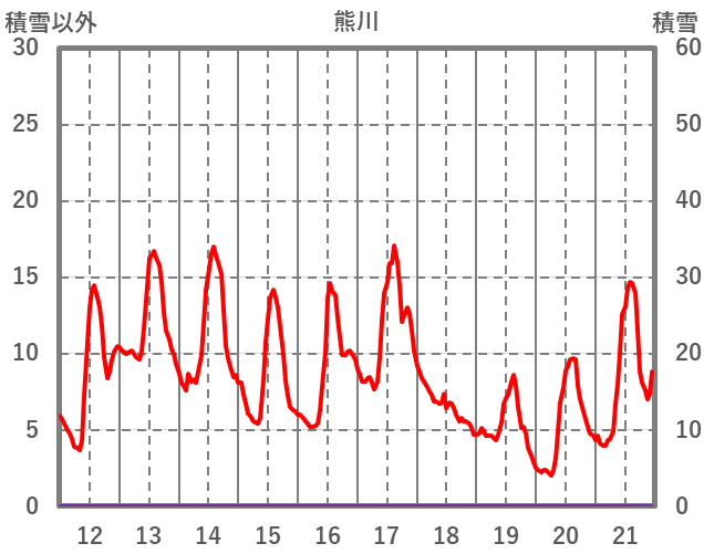 | 日 | 時 | 気温 | 降水 | 風向/風速 | 日照 | 積雪 | 降雪 |