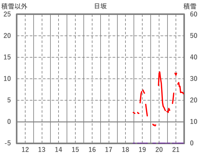 | 日 | 時 | 気温 | 降水 | 風向/風速 | 日照 | 積雪 | 降雪 |